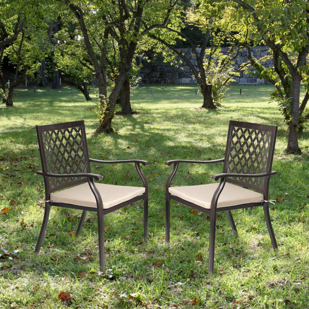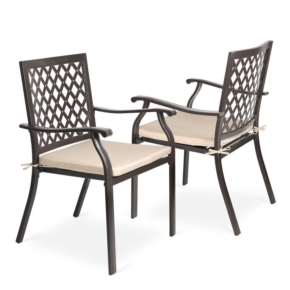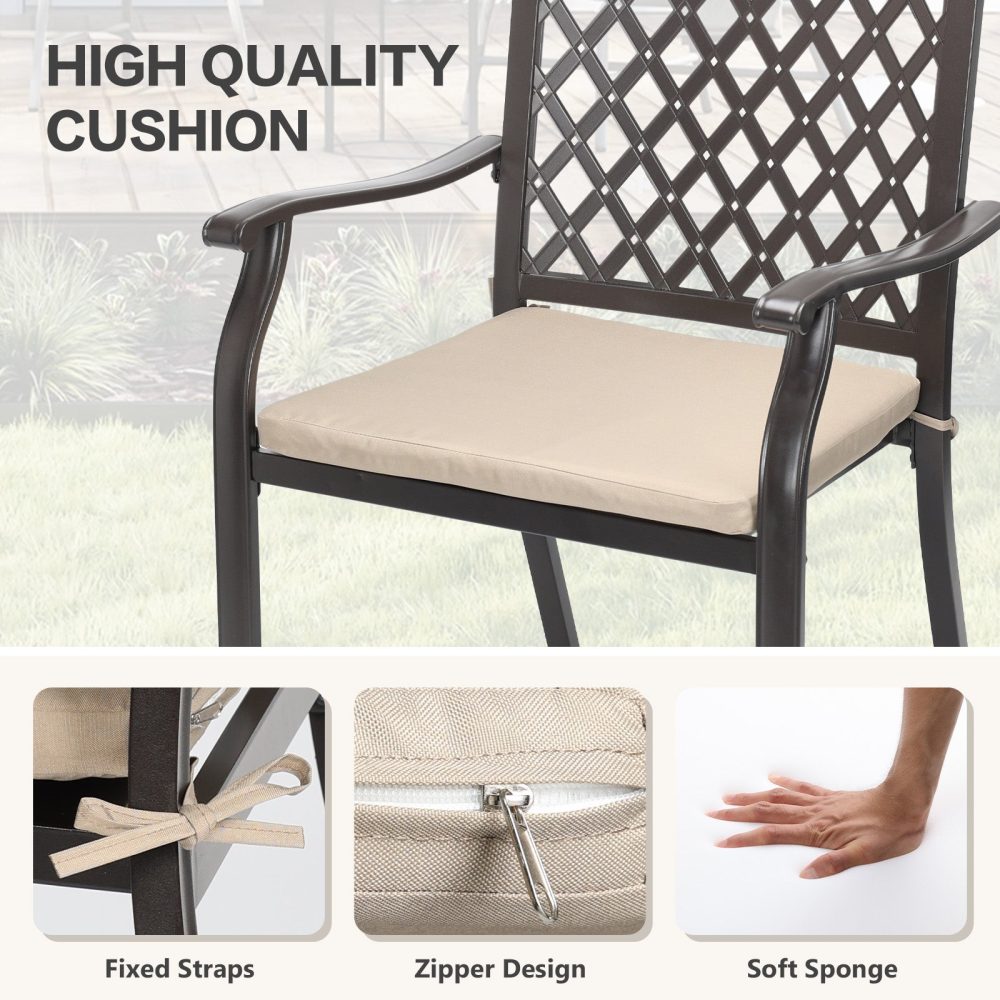 - 耐久性のある素材:当社の屋外パティオダイニングチェアは、高強度の鉄製で、ポリエステル布製のシートクッションを採用しているため、2点セットの耐久性を確保しています。